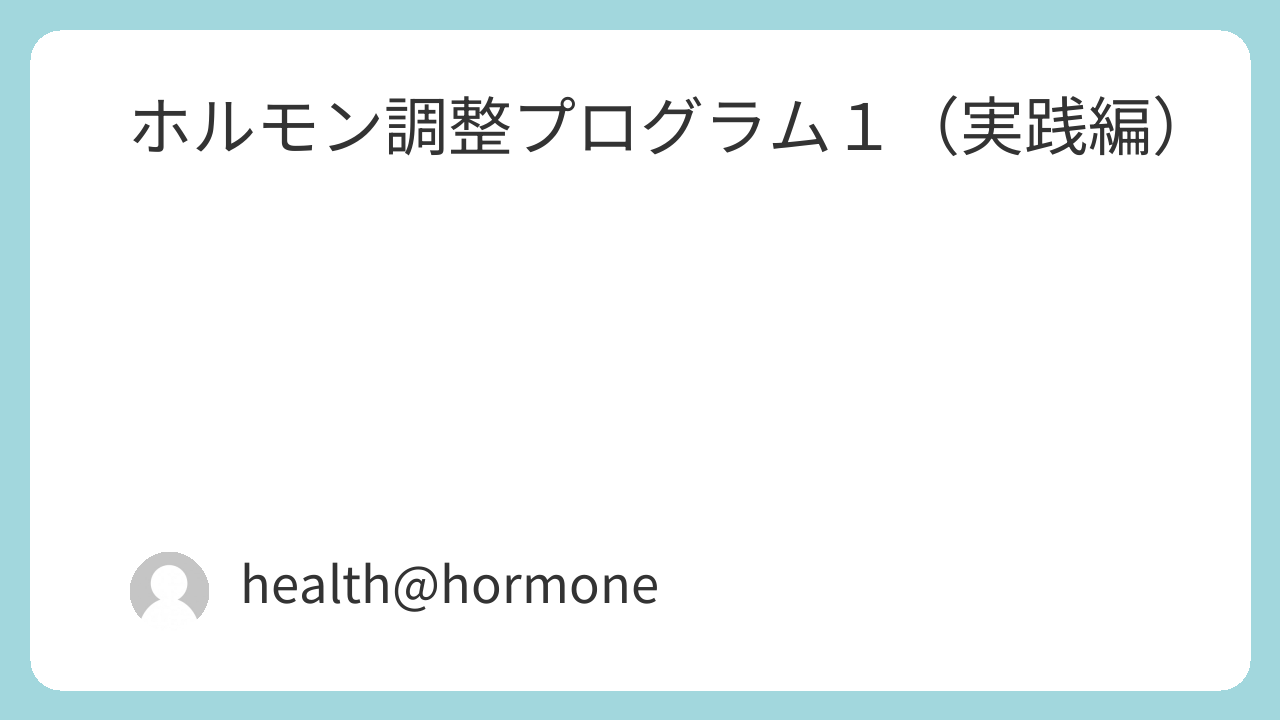 ようこそ「ホルモン調整プログラム(実践編)」へ!